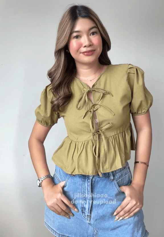 HFH-蝴蝶结印花短袖衬衫